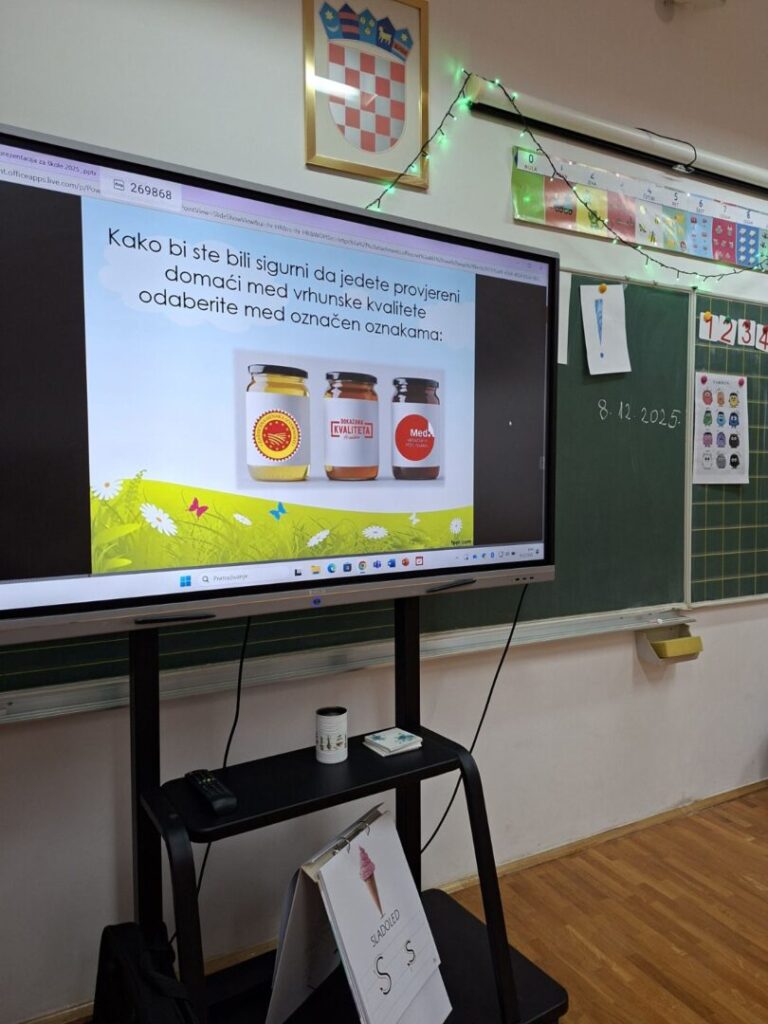 Učenici 1. razreda pogledali su prezentaciju, razgovarali o medu te su dobili prigodne poklone.