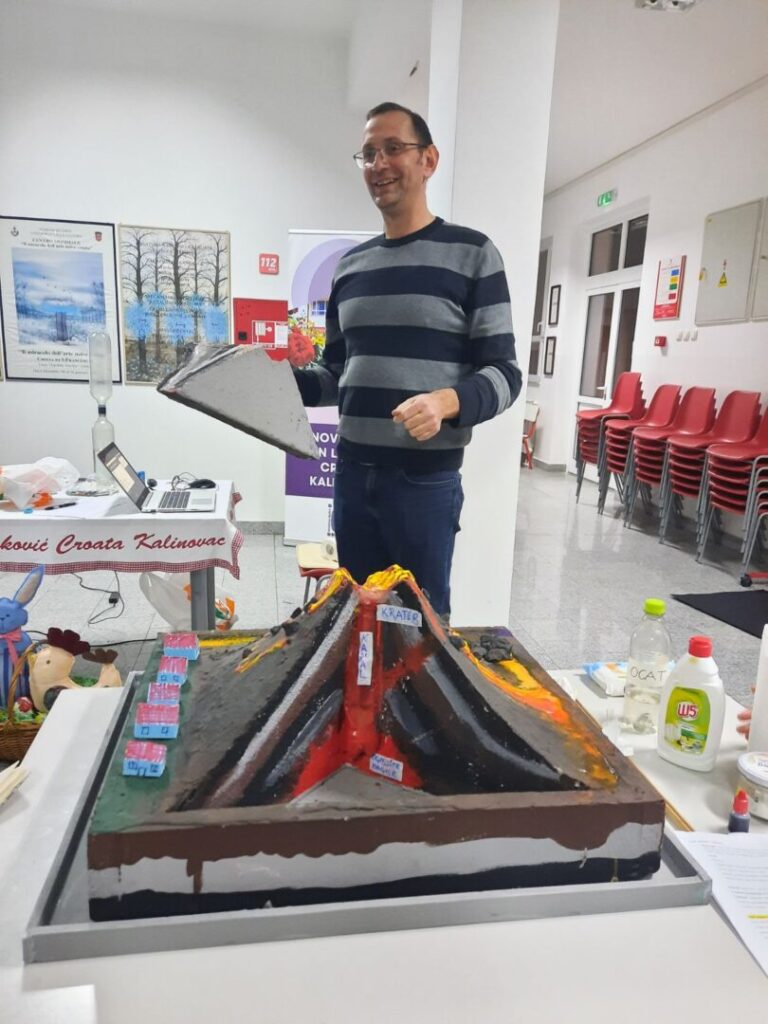 Glavna tema skupa bila je Važnost iskustvenog učenja u nastavi Geografije. Na početku skupa ravnateljica Mirjana Bazijanec pozdravila je prisutne članove i izrazila im dobrodošlicu te poželjela ugodan boravak i uspješan rad. Potom se pozdravima i željama pridružila voditeljica ŽSV-a Elizabeta Trepotec Marić i započela rad vijeća predstavljanjem DOS-a, digitalnih obrazovnih sadržaja na Edutoriju. Kolegica Vedrana Rađa izdvojila je i prezentirala, poglavlje o demografiji, iz knjige koju upravo završava, o Svetom Petru Čvrstecu (Sveti Petar Čvrstec – depopulacija sela). Kolega Zvonimir Treščec iz koprivničke Gimnazije prezentirao je Erasmus putovanje i vjerski turizam kao najstabilniji oblik turizma kroz temu Galicija – gdje Camino završava. Kolega Vedran Šikić predstavio je Erasmus put s temom Erasmus tečaj Tenerife: Outdoor Learning: from Urban Nature to Great Outdoors. Kolega Krešimir Šadek iz OŠ Ferdinandovac pokazao je pravu vrijednost iskustvenog učenja u nastavi geografije kroz radionicu. Nakon teorijskog okvira atmosfera je odmah živnula, a kolege grupirani u pet timova izvodili su pokuse (vulkan, nastanak kiše, boranje, erozija tla, efekt staklenika i globalno zatopljenje) i rješavali pripremljene radne listiće, baš poput učenika. Posebna zahvala ide bivšem učeniku Matku Soboti koji nam je iz osobnog iskustva dočarao putovanje u Južnu Ameriku: od Perua do kraja svijeta. Jako puno prekrasnih fotografija uz opise i objašnjenja pomoglo nam je doživjeti proputovane destinacije. Nitko ponosniji od učiteljice geografije i razrednice jer je Matko bio prvi naš učenik, sudionik državnog Natjecanja iz geografije, a sad se je vratio u jednoj sasvim drugoj ulozi – gosta predavača. Na samom kraju članovi su popunili evaluacijski upitnik u kojem su izrazili svoje zadovoljstvo organizacijom, temama i predavačima na stručnom skupu.