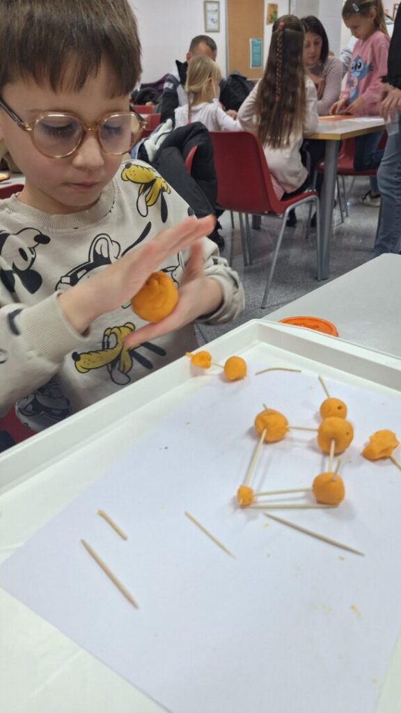 Ove smo godine pripremili šest kreativnih radionica te jednu veliku zajedničku aktivnost – Matematičku balonijadu, u kojoj smo se svi zabavili, navijali i učili kroz igru. U radionicama su sudjelovali polaznici vrtića u dobi od 5 do 7 godina zajedno sa svojim roditeljima. Roditelji su imali važnu ulogu – strpljivo su pomagali svojoj djeci u rješavanju zadataka, ohrabrivali ih i zajedno s njima uživali u matematici na zabavan način.